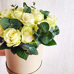 Белые цветы издавна обозначают доброе отношение, светлые чувства, нежность, чистоту и гармонию. А розы этого цвета – лучшие цветы, подходящие ребенку в честь Дня Рождения, возлюбленной на свидание или годовщину и невесте на свадьбу. Цветочная композиция в стильной голубой коробке смотрится органично, а добавление зелени обеспечивает естественность и натуральность. Запах роз улучшает настроение дарит позитив, оставляя навсегда отпечаток в памяти.